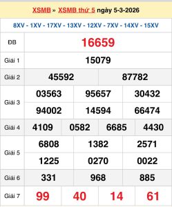 Kết quả XSMB ngày 05/03: