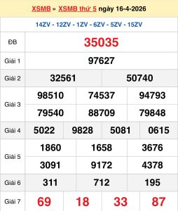 Kết quả XSMB ngày 16/04: