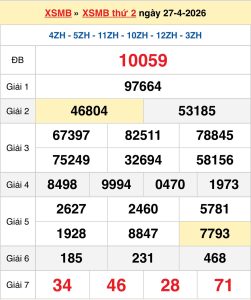 Kết quả XSMB ngày 27/04: